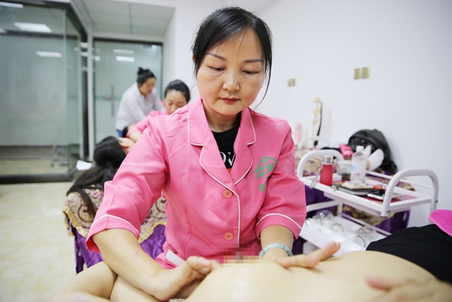 隨后,我就接到了第一個育嬰師單。在服務(wù)的過程中,也許是作為新手沒有經(jīng)驗(yàn),也許是學(xué)到的知識不夠全面,我總覺得自己不夠?qū)I(yè)。而此時,寶媽出現(xiàn)了乳房脹痛、排不出乳汁的情況,我也不知道怎么處理,只能陪她去找了個催乳師。那個催乳師的手法看起來特別生硬,寶媽疼得掉眼淚。當(dāng)時我就在想,我何不去學(xué)習(xí)一種專業(yè)無痛的手法,真正幫助產(chǎn)婦解決痛苦?后來我又了解到小兒推拿技術(shù),這是種綠色療法,可以讓寶寶少打針、少吃藥,非常受家長青睞。我決定找家學(xué)校系統(tǒng)學(xué)習(xí)月嫂、催乳師、小兒推拿師課程。