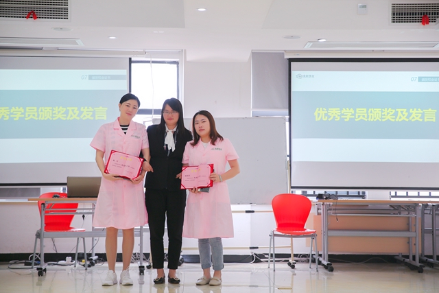緊接著,易晉、鐘智慧、李雙萍作為“優秀學員”上臺領獎。三人均十分激動,相繼感謝了學校與老師。易晉表示自己收獲到的不止專業知識,更有姐妹情深。