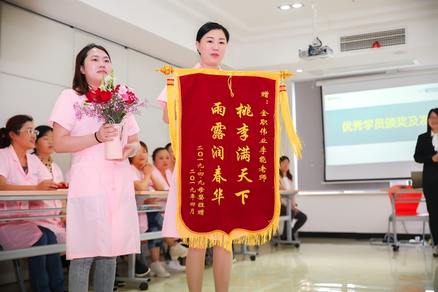 在收獲真摯感情的同時,陳銀英也收獲了豐富的知識。“因為自己本身就很喜歡寶寶,來這里學習了母嬰護理后,感覺自己更專業了,也讓自己愛心爆棚。”勤奮好學的陳銀英通過自己的努力,獲評金職偉業297班母嬰護理師班“優秀班干部”。