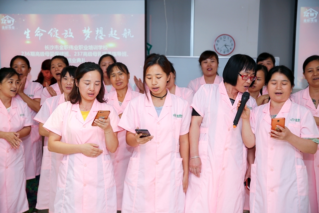 一開場,月嫂班的全體學員帶來了大合唱《明天會更好》,借此表達自己的心聲及對老師與同學們的祝福。
