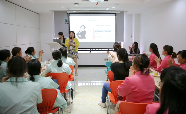 除教務外,閆老師還主導學員的就業(yè)工作。目前,金職偉業(yè)母嬰保健師班(月嫂班)學員的就業(yè)率達90%以上,母乳喂養(yǎng)指導師班(催乳師班)、產(chǎn)后康復師班、小兒推拿保健師班等的就業(yè)情況也十分良好,成績可謂有目共睹。但大家不知道的是,閆老師剛接手學員就業(yè)工作的時候,所面臨的挑戰(zhàn)比教務上還要大。“當時的公司還太新了,且缺乏足夠的市場經(jīng)驗,導致就業(yè)單位對我們培養(yǎng)的學員并不買賬,即使上單的學員也常常會遭遇退單。”這讓閆老師既尷尬又苦惱。為了快且準地解決問題,她只好一邊大力尋找更多合作伙伴,一邊積極與就業(yè)單位進行溝通,在了解市場需求的同時,挖出金職偉業(yè)的就業(yè)短板。“缺什么補什么”,根據(jù)各方摸索來的問題,閆老師很快研制出對癥的藥方——將“就業(yè)”貫穿學員的整個學習階段。從入學前的測試,到培訓中的形象禮儀課程,再到結(jié)業(yè)前的面試指導和就業(yè)指導,都是她們根據(jù)歷屆學員情況不斷總結(jié)經(jīng)驗后增設的。正是這些努力,讓金職偉業(yè)學員的就業(yè)率一路攀升。