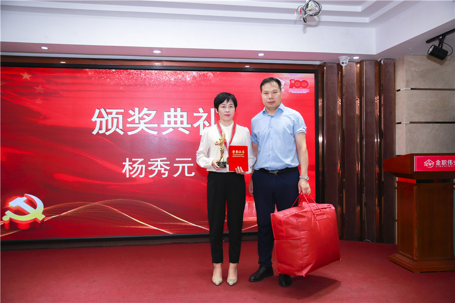 “這個獎離不開大家的支持,也見證了我的努力與成長。目前我參加培訓考證的課程有:高級母嬰護理師、高級育嬰員、高級母乳喂養指導師、高級產后恢復師,高級小兒推拿師,母嬰護理講師、中級保育員及中級養老護理員。我之所以選擇持續學習,是因為我覺得價值不僅體現在接單價格,更體現在價有所值,學以致用。我從第一次接月子單遭遇挫折,到現在可以順利接下湘雅醫院護士及教授的月子單,月子單的價格由最初四千左右漲到現在一萬多。學習提升技能,知識改變命運。我的夢想是成為一名母嬰老師,傳授與分享母嬰知識,幫助更多有需要的人。現在已有學校聘請我為母嬰實操老師。責任就是方向,經歷就是資本。再次感謝金職偉業讓我找到了方向,擁有了資本。未來我會更加努力,不負眾望。”劉劍蘭激動地分享道。