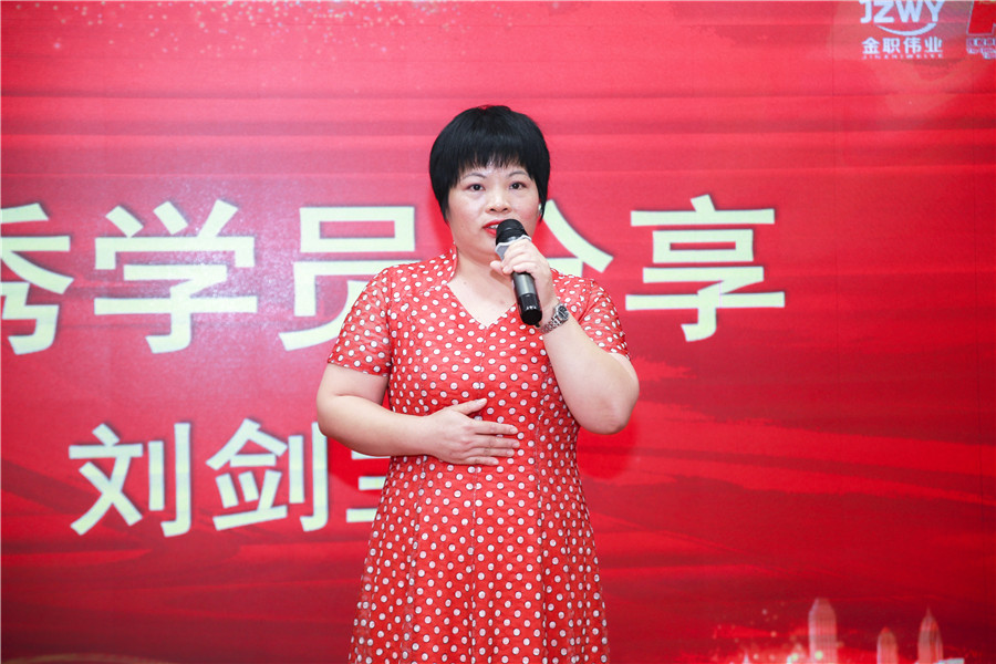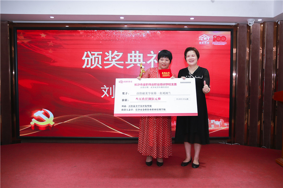 每一位“最美學員”的經歷,都是一部多姿多彩的故事集。隨后,優秀學員肖宏、“百佳最美學員”第一名劉劍蘭先后上臺進行發言。“感謝金職偉業的平臺,讓我們在這里一起學習、成長,這將是我們所有學員受益匪淺又值得珍視一生的人生旅程,衷心感謝金職偉業的老師,你們無私、細心傳授專業知識及嫻熟的技能操作,使我們順利通過理論和技能考核。我在工作中感覺到只要技術到位、真心以待,總會獲得認可和尊重。感謝學校,使我們學有所獲、學有所用,今后,我會不斷學習充實自己,用更多的愛去服務需要幫助的人,在辛苦奮斗養活家人的同時也不會忘了生活本是一道美麗的風景。”
