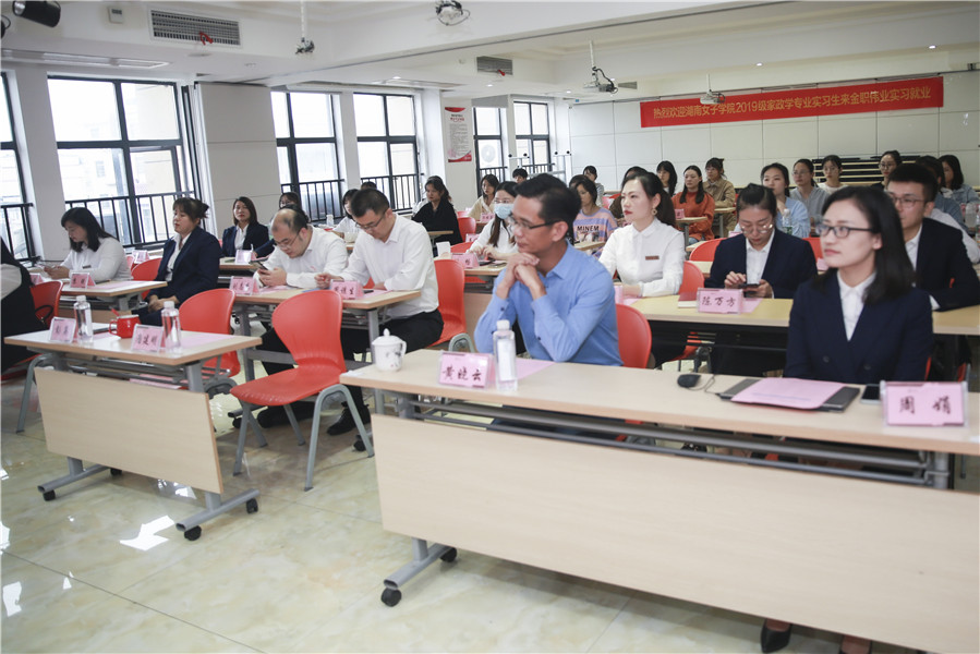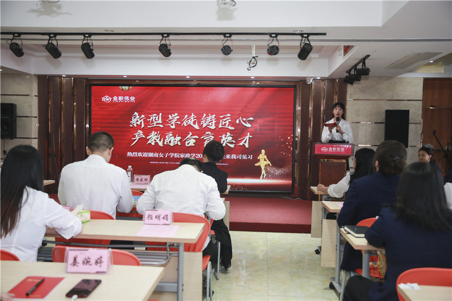 10月8日,作為湖南女子學院“產學研教育基地”的湖南金職偉業現代家庭產業發展有限公司(下簡稱“金職偉業”)迎來了25位特殊的“員工”,她們是前來參加專業見習的湖南女子學院2019級家政學專業大學生,據了解,這是繼去年12月以來,金職偉業迎來的第二批湖南女子學院家政學專業實習生。下午2時,一場別開生面的歡迎會準時開啟,金職偉業董事長、商學院院長、卓越創業導師彭英,金職偉業總經理、湖南省育嬰師協會會長潘建明,湖南女子學院家政系主任梁小燕,今日女報/鳳網e家運營總監黃曉云及金職偉業各部門負責人出席歡迎會。