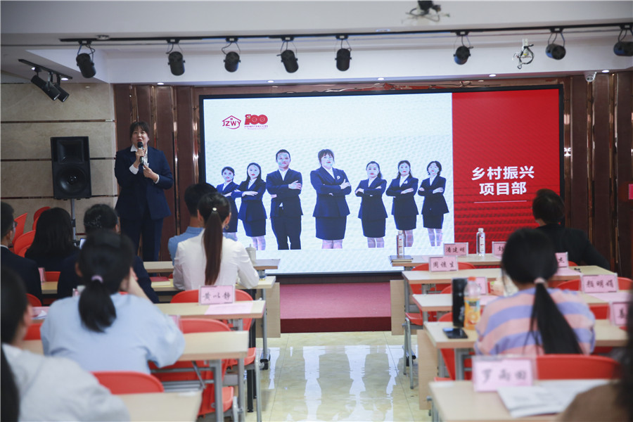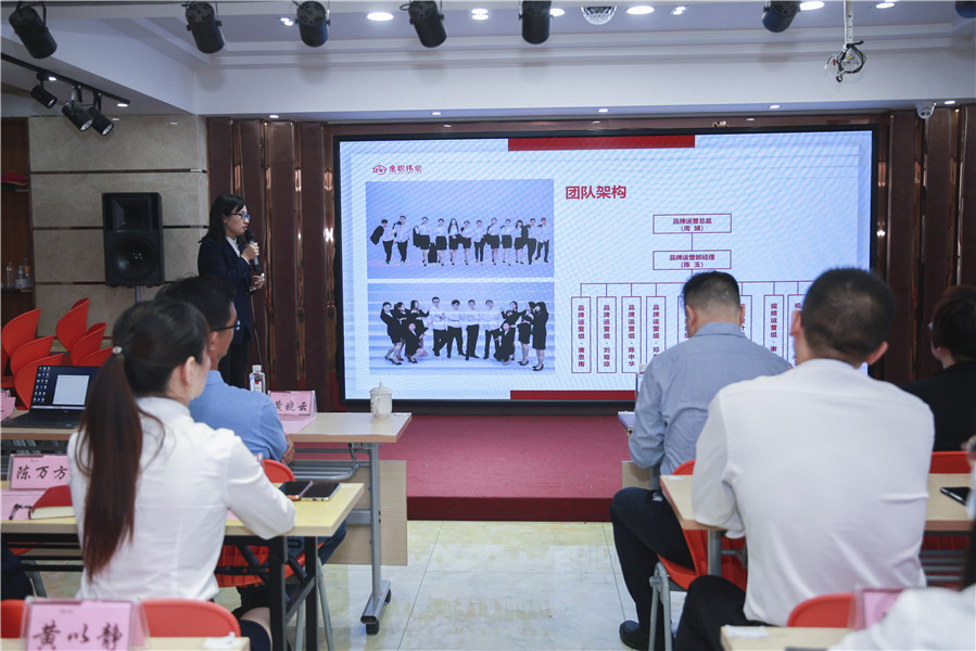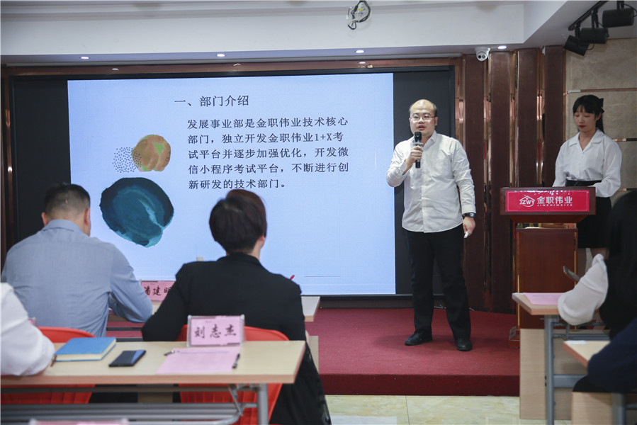 隨后,品牌運營部項目部負責人周娟、標準研發項目部負責人劉志杰、教學管理項目部負責人陳萬方、1+X運營項目部負責人周該生、鄉村振興項目部負責人蘇瓊、門店運營項目部負責人邱艷、綜合管理項目部負責人代玉芬,從部門職能、架構等方面向在座學生進行了介紹和宣講。