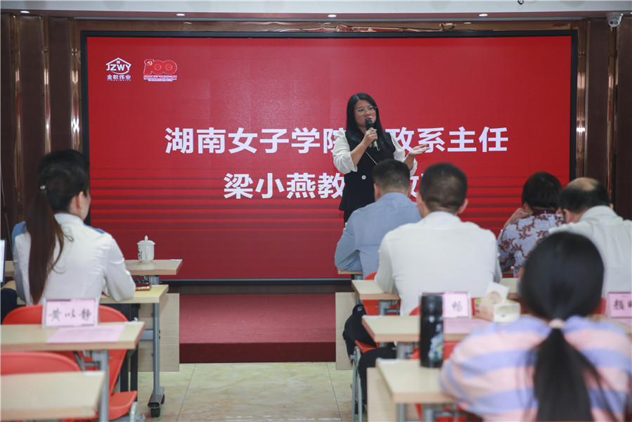 活動伊始,金職偉業董事長彭英致歡迎詞。其一,她指出,職業教育大有作為、家政服務大有可為,如今的家政行業早已與傳統的家政行業大不相同,她期望湖南女子學院家政學的學生們能融入行業,用專業知識為促推行業發展做出貢獻。其二,彭英提到,現代學徒制人才培養模式的本質是培訓實用型人才。其核心內容有三層:一是產教融合和校企合作;二是雙元育人,學生也是學員;三是工學交替,崗位成才;最后,彭英也對本次培訓寄予了期盼,她表示金職偉業將以企業高標準做好學生們一個月的實習安排,期待大家在學中做、做中學,育訓結合,學有所用,學有所成,以榜樣的力量成就新的人生。