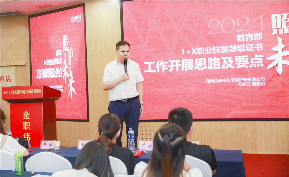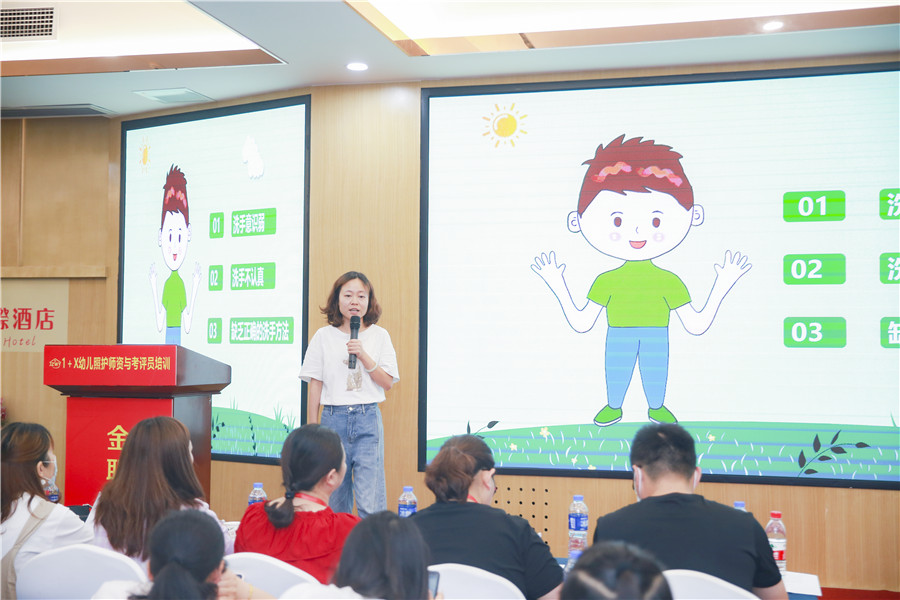 金職偉業總經理潘建明介紹道,“1+X幼兒照護職業技能等級證書,作為托育托幼領域的第一張‘1+X’職業技能等級證書,可靶向式解決‘托育從業人員能力水平無法準確評價’的堵點問題。推動1+X幼兒照護職業技能等級證書試點,對于促進托幼托育行業發展具有十分積極的意義。”