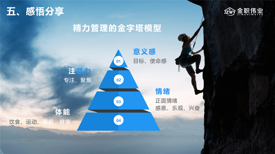 每一個人都很辛苦,每個人都背負著家庭和事業的壓力,這時,擁有飽滿的精神狀態,有持續為之奮斗的目標,才能經常保持清醒的頭腦,全神貫注,思想集中,對工作保持高效率,對生活保持積極性。所以,我們必須學會做好自身的精力管理。