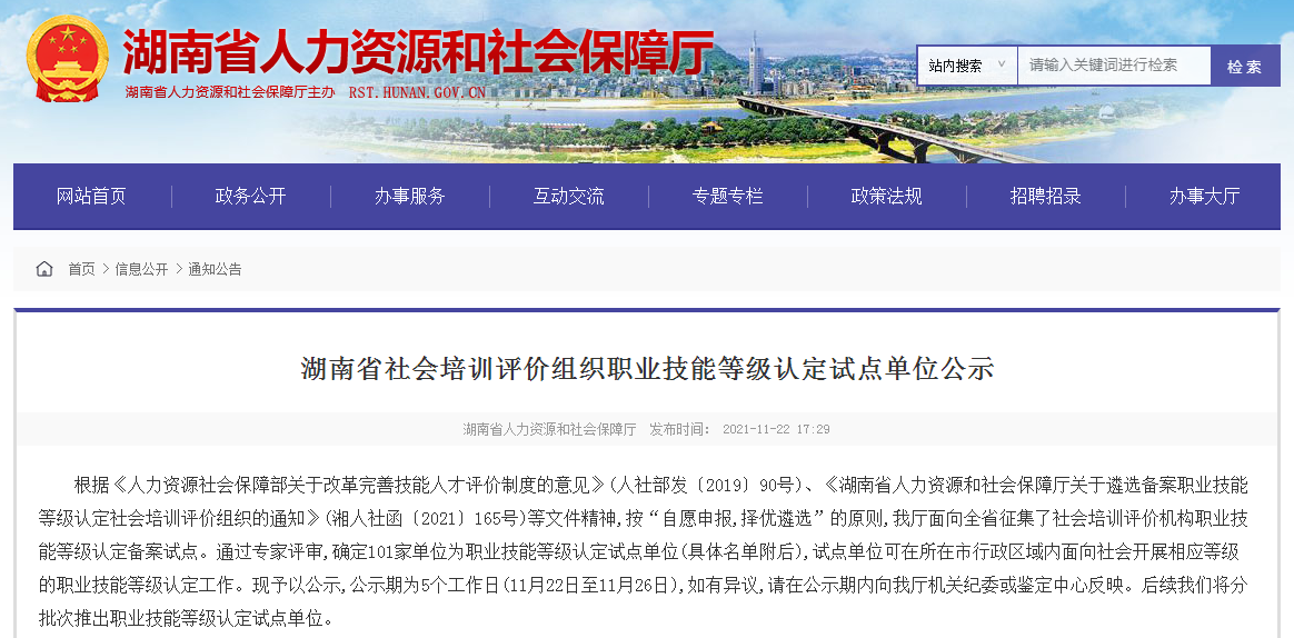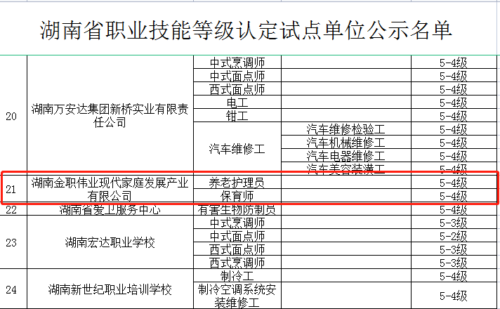 近日,湖南省人力資源和社會(huì)保障廳下發(fā)《湖南省社會(huì)培訓(xùn)評(píng)價(jià)組織職業(yè)技能等級(jí)認(rèn)定試點(diǎn)單位公示》,湖南金職偉業(yè)現(xiàn)代家庭發(fā)展產(chǎn)業(yè)有限公司(以下簡(jiǎn)稱(chēng)“金職偉業(yè)”)等101家機(jī)構(gòu)入選為湖南省社會(huì)培訓(xùn)評(píng)價(jià)組織職業(yè)技能等級(jí)認(rèn)定試點(diǎn)單位。