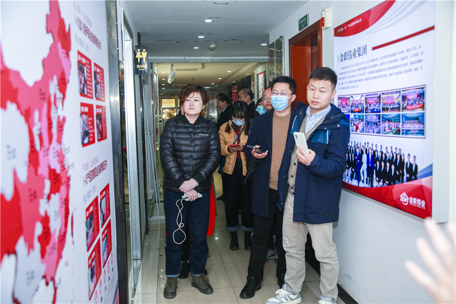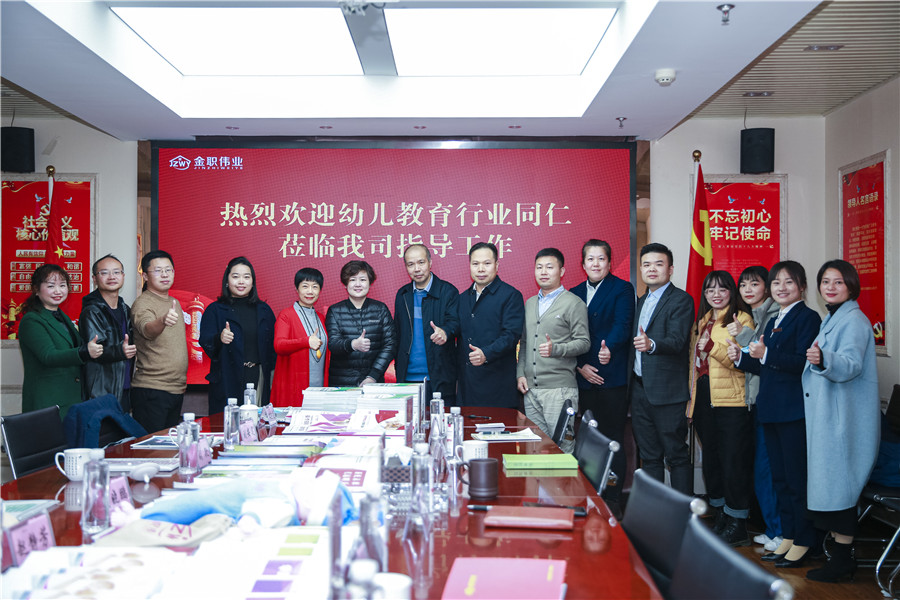 為加強溝通交流,找準合作契合點,12月6日,貝爾安親集團創始人兼董事長黃曉鵬、創始人兼總經理趙靜芳,好老師教育集團創始人兼董事長徐進程,悅健康創始人兼總經理胡敏,鹽業魚尾獅教育科技有限公司董事長劉安定,博恩行知教育科技有限公司創始人付洪恩一行蒞臨金職偉業考察交流,在金職偉業總經理潘建明、董事長助理兼品牌運營總監周娟、總經理助理湯曌宇的陪同下,黃曉鵬一行先后參觀了金職偉業運營總部、金職偉業職業培訓學校、旗下金嬰麗人直營門店,實地考察了金職偉業各項業務工作。