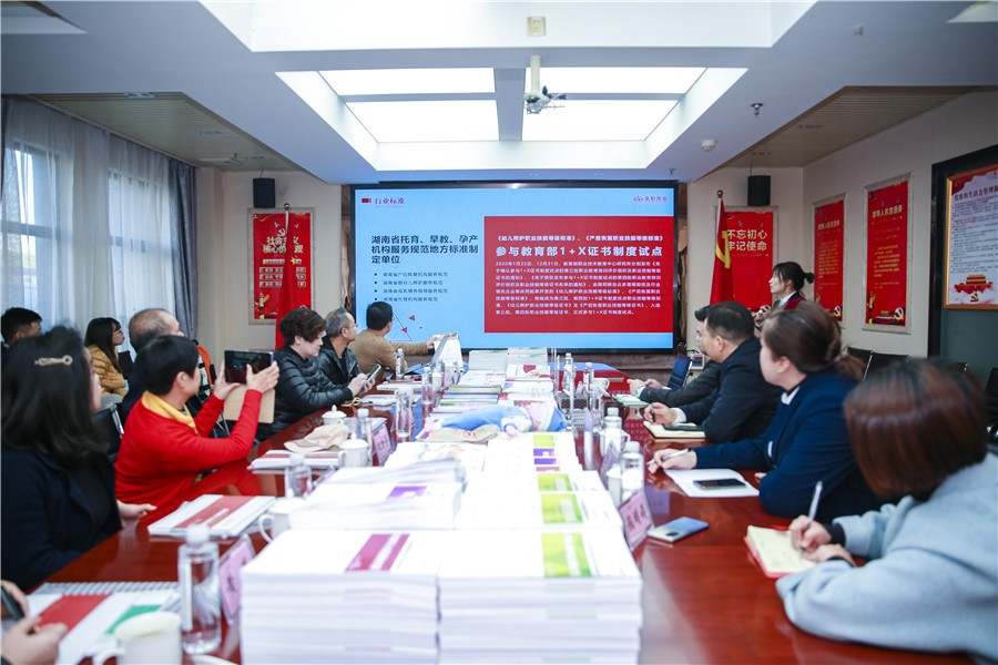 座談會上,金職偉業董事長助理兼品牌運營總監周娟對公司的組織架構、經營模式、核心項目及幼兒照護、產后恢復職業技能等級證書試點工作取得的成果做了詳盡介紹。