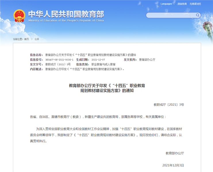 為深入貫徹全國職業教育大會和全國教材工作會議精神,加強“十四五”職業教育規劃教材建設,在國家教材委員會統籌領導下,教育部辦公廳印發了《“十四五”職業教育規劃教材建設實施方案》。其中提到,一是要開發服務國家戰略和民生需求緊缺領域專業教材。服務民生領域急需緊缺行業發展,加快建設學前、托育、護理、康養、家政等領域專業課程教材。二是加快建設新形態教材。結合專業教學改革實際,分批次組織院校和行業企業、教科研機構、出版單位等聯合開發不少于1000種深入淺出、圖文并茂、形式多樣的活頁式、工作手冊式等新形態教材。開展“崗課賽證”融通教材建設,結合訂單培養、學徒制、1+X證書制度等,將崗位技能要求、職業技能競賽、職業技能等級證書標準有關內容有機融入教材。