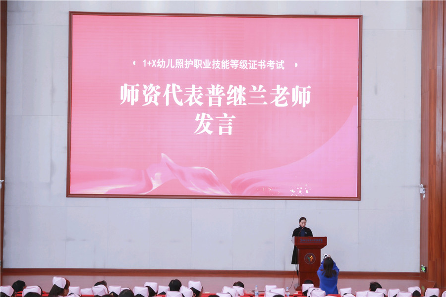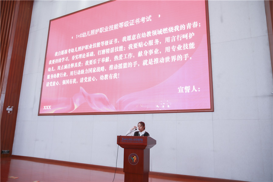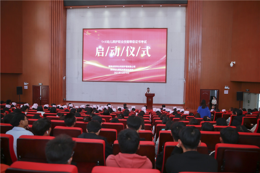“我校3187名學前、早教專業學生將于12月18日至22日統一參加1+X幼兒照護職業技能等級證書考試,全校師生全力以赴、積極備考,將以扎實的職業技能迎接大考,為填補百萬級托育人才缺口做出更大貢獻!”12月16日下午,昆明幼兒師范高等專科學校舉行1+X幼兒照護職業技能等級證書(初、中級)考試啟動儀式,學校領導和金職偉業領導出席了本次會議。這也意味著1+X幼兒照護職業技能等級證書考評工作自開展以來,迎來了規模最大、人數最多的一次考試。