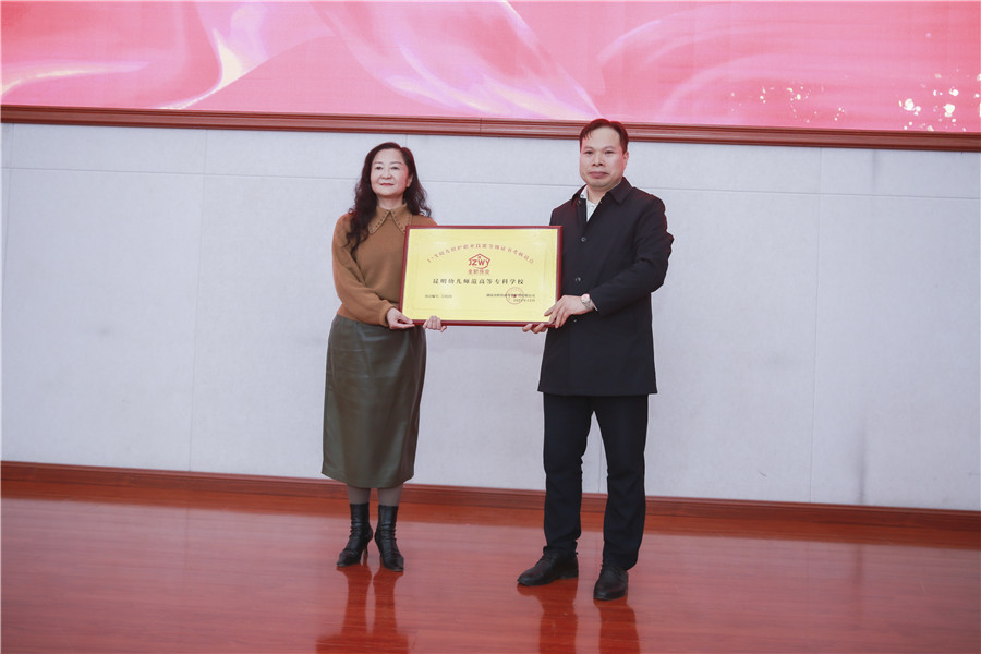 特別的是,在啟動儀式上,金職偉業總經理潘建明還為昆明幼兒師范高等專科學校授牌“1+X證書制度試點幼兒照護職業技能等級證書考核站點”,昆明幼兒師范高等專科學校黨委書記、校長孔萍接牌;金職偉業聘請昆明幼兒師范高等專科學校學前教育系主任董云濤、早期教育系主任宋海生為“1+X幼兒照護職業技能等級證書項目專家”。