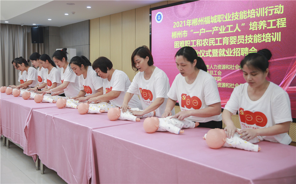 金職偉業積極響應國家號召,穩步推進職業技能提升行動,鞏固脫貧攻堅成果,助力鄉村振興。金職偉業開設育嬰員、保育員、養老護理員、保健按摩、電子商務等多項職業技能培訓項目,推動當地家政服務業提質擴容,帶動更多人實現精準就業、高質量創業。深入長沙各市縣區、郴州、株洲茶陵、湘西龍山、張家界桑植等地開設職業技能培訓班近百期,通過培訓指導與幫扶,累計幫助數千人員轉移就業。此外,技能培訓還走入湖南外國語職業學院、郴州技師學院等多所高校,為各大高校在讀學生帶去專業技能知識,為其就業創業賦能。