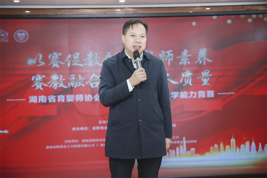 湖南省育嬰師協(xié)會會長、金職偉業(yè)集團(tuán)有限公司總經(jīng)理潘建明最后進(jìn)行總結(jié)發(fā)言,他提到,本次大賽作為湖南省育嬰師協(xié)會舉辦的首屆教師教學(xué)能力競賽,對職業(yè)教育教師隊伍以及行業(yè)的發(fā)展有著深遠(yuǎn)意義和影響。不僅有效探索了職業(yè)教育教師人才培養(yǎng)模式,拓寬了職業(yè)教育教學(xué)科研思路,還提升了治學(xué)育人水平,推動了職教行業(yè)師資力量不斷充實,為職教行業(yè)的蓬勃發(fā)展助力賦能。