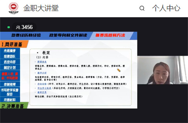 在參賽流程和方法方面,王磊老師通過流程圖、表格等形式,條理清晰地向大家展示了參賽步驟,包括研讀文件、參考歷年獲獎作品、組建團隊、選取參賽內容、制定計劃等,她強調,參賽作品必須有數據佐證,創新的教學模式和方法才能夠大大增強學生的職業榮譽感,備賽是一個繁復的過程,教案的無數次練習和修改挑戰著教師的心理素質和信念,此時此刻,唯有堅持才能看到勝利的曙光。