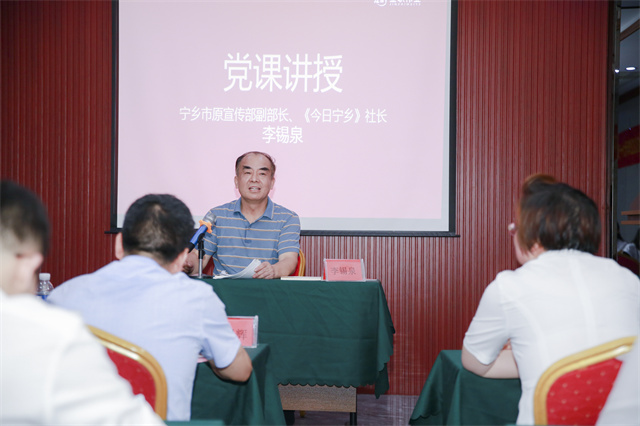 緊接著,全體同志聆聽了由寧鄉市原宣傳部副部長、《今日寧鄉》社長李錫泉主講的一堂生動的黨課。黨課開始前,彭英董事長獻上致辭,她提醒在場所有黨員和金職人,幸福感是建立在責任和奮斗之上,要幸福一定要先拼搏,“我們所有金職人,要將企業目標、個人目標與中國共產黨的宗旨永遠地連在一起,相信在中國共產黨的領導下,我們一定能夠實現中國夢,金職夢,創業夢!”