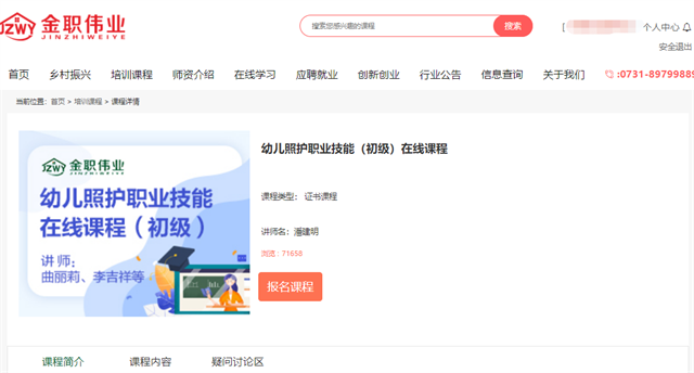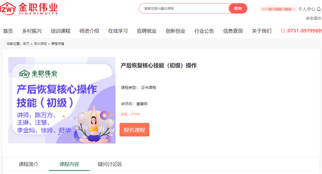 據了解,產后恢復、幼兒照護核心操作技能(初級、中級)線上課程由金職偉業聯合雙高校、行業、企業專家教授共同打造,用戶注冊登錄金職偉業職業技能平臺官網(https://www.jz1x.com/),進入培訓就業平臺或登錄智慧職教MOOC學院,即可免費觀看學習。旨在為各院校師生搭建豐富便捷的網絡自學平臺,實現優質教學資源共享。