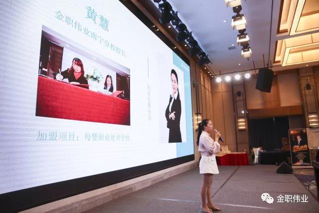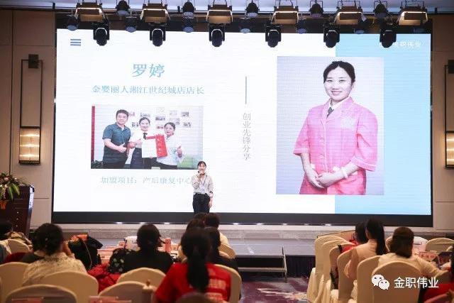 金職偉業南寧分校校長黃慧女士、金嬰麗人邵陽店店長曾艷女士、金嬰麗人長沙湘江世紀城店店長羅婷女士依次登臺,講述了她們的創業故事。南寧分校開業當日現場報名交費30余人,100余名學員預約學習名額;湘江世紀城分店2017年9月開始試營業,半年就已收回成本;邵陽分店開業當天吸引了100多位客戶上門,數十位客戶現場成交……