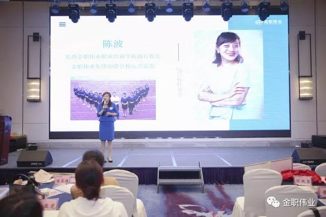 長沙市金職偉業職業培訓學校校長、金職偉業集團加盟分校運營總監陳波女士作為運營先鋒,分享了管理金職偉業直營學校的經驗。