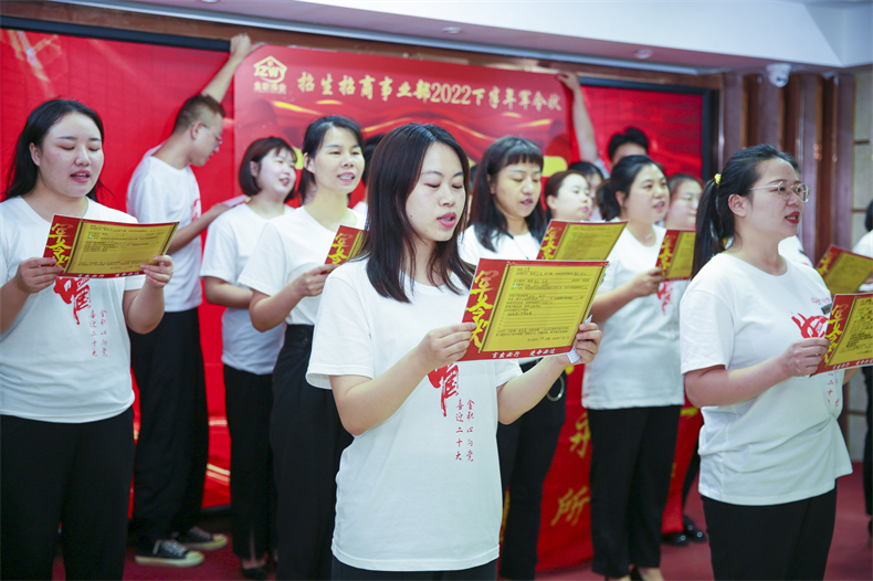 誓言錚錚立壯志,發起“總攻勢”。激情澎湃的團隊誓師,將全場氛圍推向了高潮。全體金職人斗志昂揚、信心百倍,立誓奮勇強攻,沖刺2022年度目標。