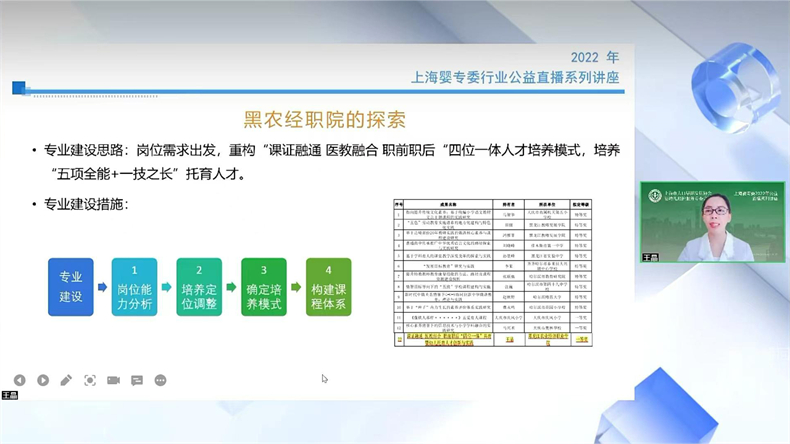 此次,為分享好的經驗和成果,金職偉業特聘講師王晶副教授以“課證融通 醫教融合 職前職后四位一體嬰幼兒托育人才培養創新與實踐”為主題,以黑龍江農業經濟職業學院嬰幼兒托育專業的建設過程為依據,詳細講解了培養“政、校、企、行”四位一體嬰幼兒托育人才的實施路徑和方法。