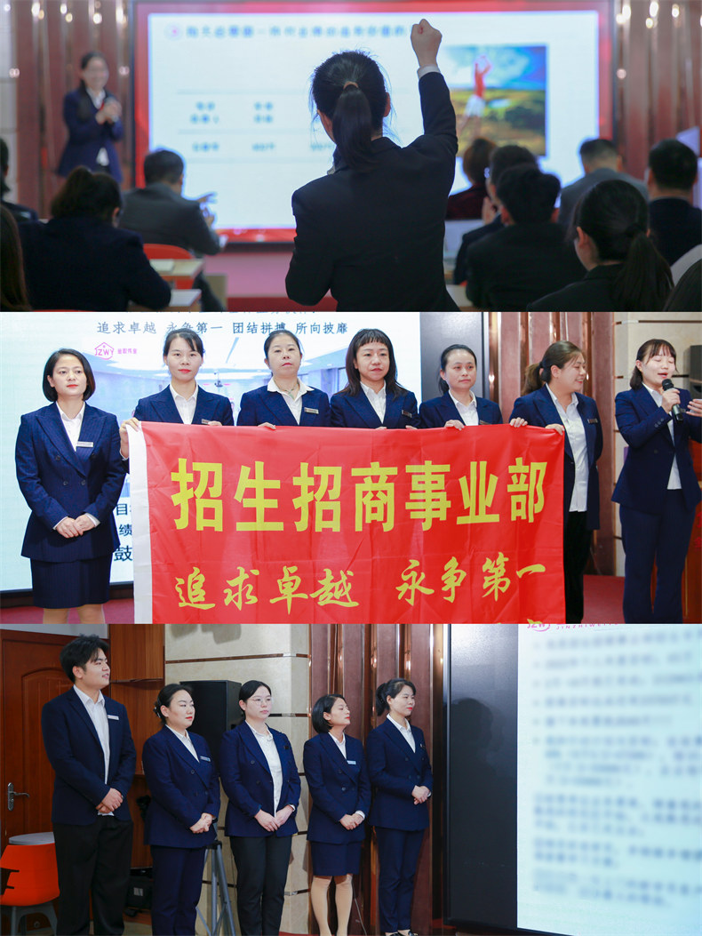 團隊展示環節,各大部門立足自身業務板塊,依次上臺表達了自身接下來實現目標的決心。院校事業部和招生招商事業部的伙伴們,更用詳實、準確的數據,匯報了自身業績完成情況、差額情況,以及接下來沖擊目標的具體路徑。
