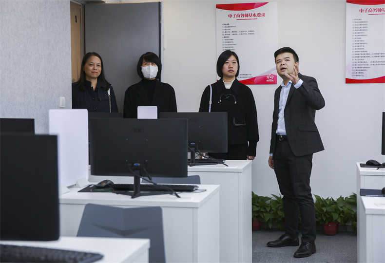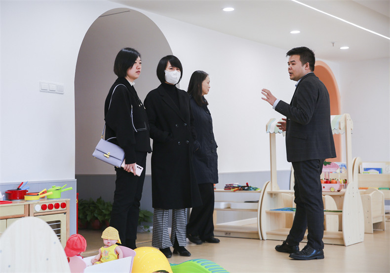 為進一步了解金職偉業1+X證書考評、人才培養、校企合作等情況,粟荔一行先實地參觀了金職偉業旗下家庭服務產業學院、培訓學校、產教融合型門店、托育綜合服務中心以及1+X幼兒照護實訓基地,并聽取了金職偉業院校事業部總監周該生的詳細匯報。