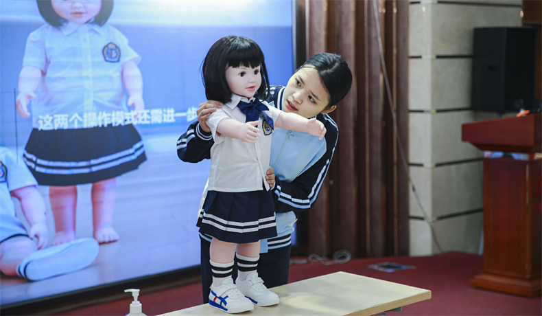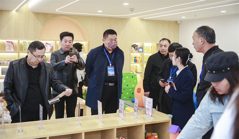 隨后,所有管理干部們現(xiàn)場(chǎng)體驗(yàn)了金職偉業(yè)研發(fā)的智能仿真幼兒、嬰幼兒照護(hù)全息智能化訓(xùn)練系統(tǒng)(MR)等智慧職教產(chǎn)品,并充分肯定了該產(chǎn)品在助力學(xué)生練習(xí)、實(shí)踐、考評(píng)方面的作用。