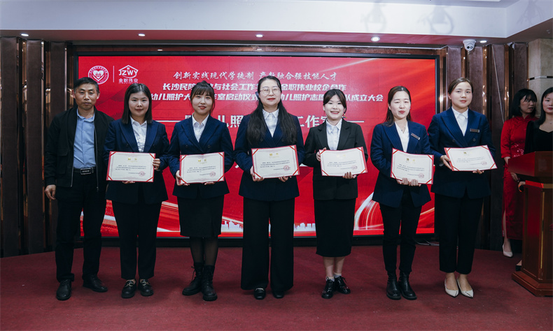 為進一步凝聚力量,推動嬰幼兒照護大師工作室的發(fā)展,現(xiàn)場還在同學(xué)們的助力下,成立了“嬰幼兒照護大師工作室志愿者團隊”。