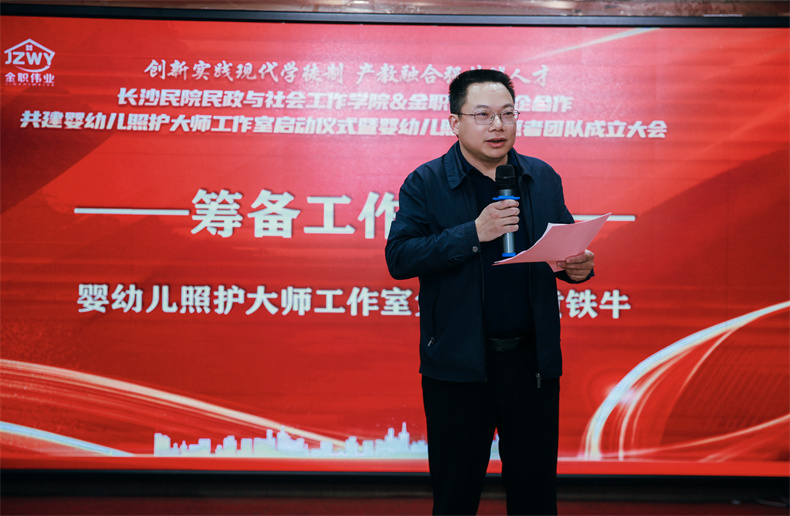 “大師工作室將不斷吸收托育機構(gòu)、醫(yī)療機構(gòu)專業(yè)人員參與,致力把工作做好、做實、做精,爭取取得優(yōu)異的成績。”長沙民政職業(yè)技術(shù)學(xué)院民政與社會工作學(xué)院黃鐵牛教授在作工作匯報時提到,要推進產(chǎn)教融合、科教融匯,產(chǎn)教科融合是職業(yè)教育高質(zhì)量發(fā)展的必由之路,也是老師和學(xué)生發(fā)展的必由之路,也是職業(yè)教育培訓(xùn)評價組織發(fā)展的必由之路。