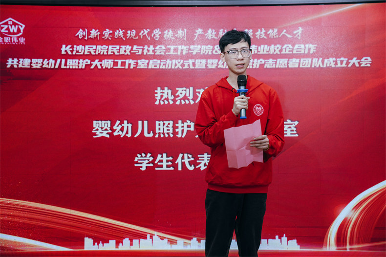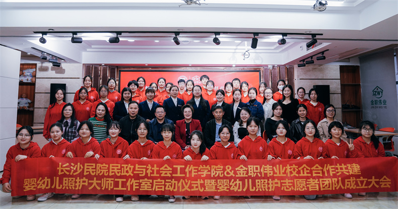 為進一步加深校企合作、產(chǎn)教科融合,加速校企合作的橫向、縱向發(fā)展,4月11日,長沙民政職業(yè)技術(shù)學(xué)院民政與社會工作學(xué)院&金職偉業(yè)校企合作共建嬰幼兒照護大師工作室啟動儀式暨嬰幼兒照護志愿者團隊成立大會成功召開。會上,嬰幼兒照護大師工作室及其志愿者團隊正式成立,民政與社會工作學(xué)院學(xué)生現(xiàn)代學(xué)徒制拜師儀式順利舉行。