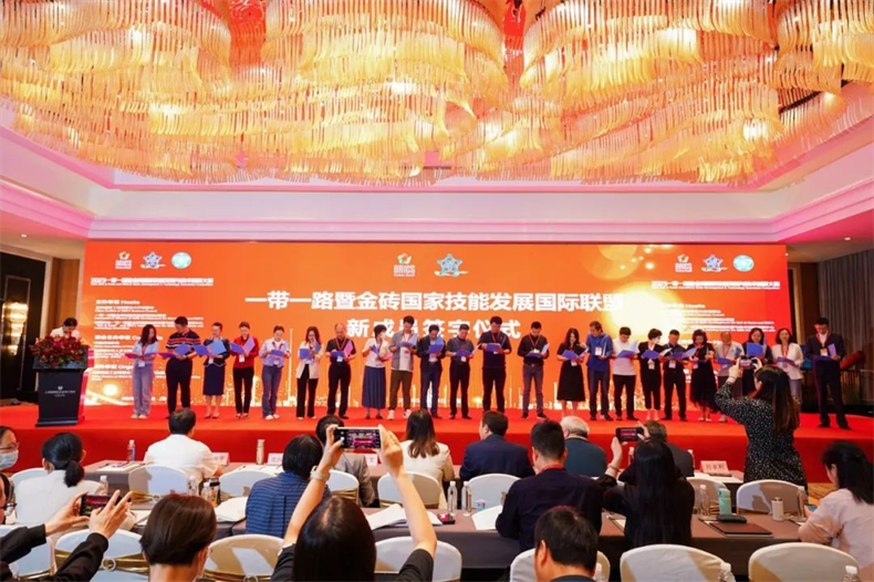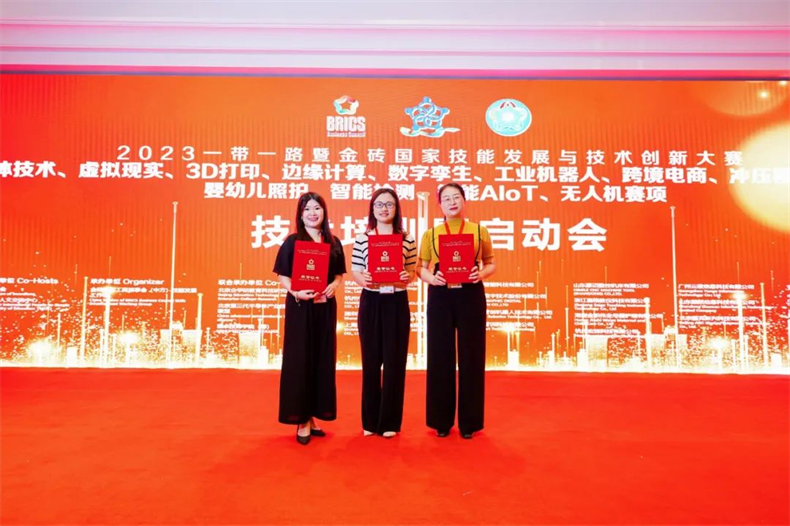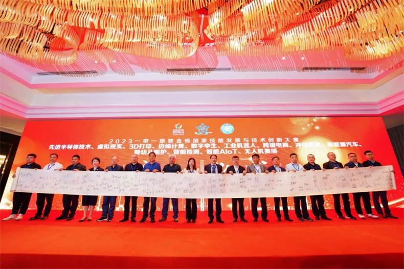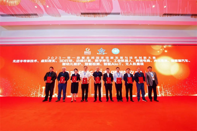 會上,金職偉業總經理潘建明、董事長助理兼品牌運營總監周娟、技術研發中心主任陳萬方、副主任李偲婧受聘為2023一帶一路暨金磚國家技能發展與技術創新大賽技術委員會技術委員。同時,金職偉業成功入選一帶一路暨金磚國家技能發展國際聯盟會員單位,并被授予榮譽證書。