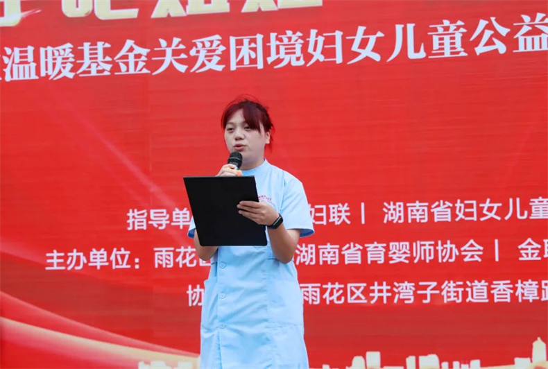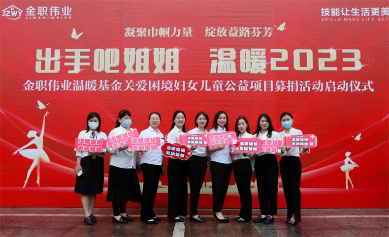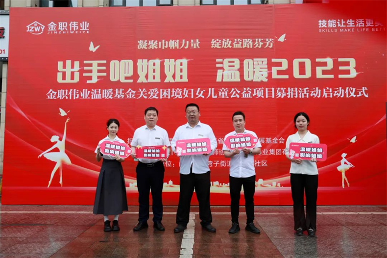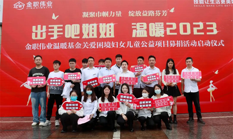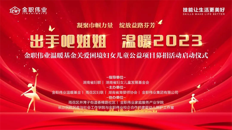 5月20日,湖南省婦女聯(lián)合會(huì)、湖南省婦女兒童發(fā)展基金會(huì)聯(lián)合發(fā)起“出手吧姐姐,溫暖2023——關(guān)愛困境婦女兒童”募捐活動(dòng),金職偉業(yè)溫暖基金、雨花區(qū)婦聯(lián)、湖南省育嬰師協(xié)會(huì)、金職偉業(yè)集團(tuán)有限公司(以下簡(jiǎn)稱“金職偉業(yè)”)、長(zhǎng)沙民院民政與社會(huì)工作學(xué)院與金職偉業(yè)校企合作共建嬰幼兒照護(hù)工作室積極響應(yīng)活動(dòng)倡議,舉辦“技能:讓生活更美好”“出手吧姐姐 溫暖2023——關(guān)愛困境婦女兒童”募捐活動(dòng)。雨花區(qū)婦聯(lián)主席黃蔚、雨花區(qū)井灣子街道香樟路社區(qū)黨委書記甘濤、長(zhǎng)沙民政職業(yè)技術(shù)學(xué)院民政與社會(huì)工作學(xué)院黃鐵牛教授、湖南外國(guó)語(yǔ)職業(yè)學(xué)院聶梅花老師、金職偉業(yè)董事長(zhǎng)彭英、湖南省育嬰師協(xié)會(huì)會(huì)長(zhǎng)、金職偉業(yè)總經(jīng)理潘建明等人出席并為愛“出手”,全體金職人及幼兒照護(hù)工作室學(xué)生志愿者參與活動(dòng)。