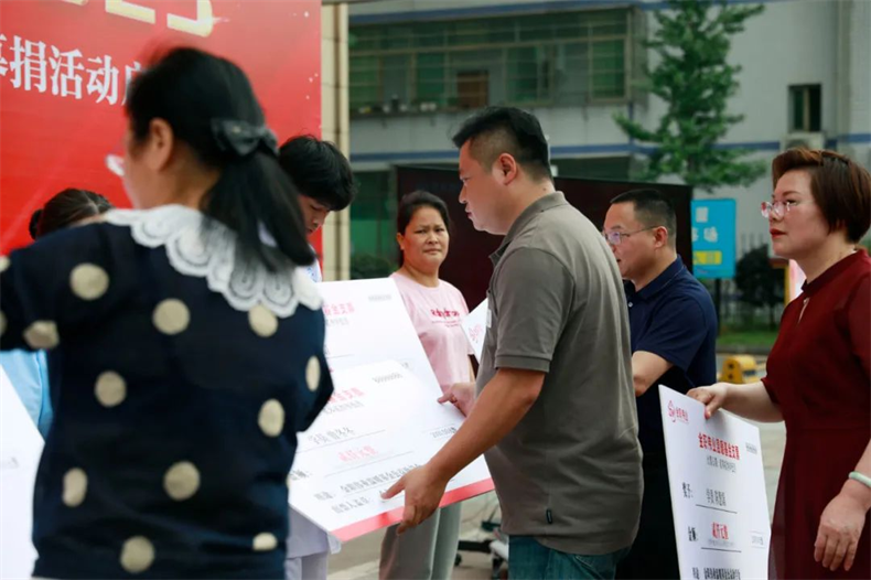 活動(dòng)最后,黃蔚主席、甘濤書記、黃鐵牛教授、彭英董事長(zhǎng)、潘建明總經(jīng)理率先參與捐贈(zèng),隨后全體金職人及幼兒照護(hù)工作室學(xué)生志愿者有序上臺(tái)捐出善款。