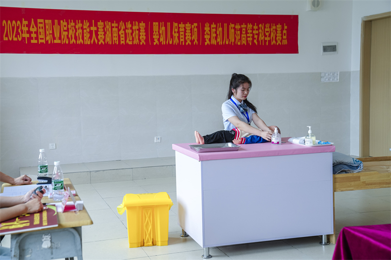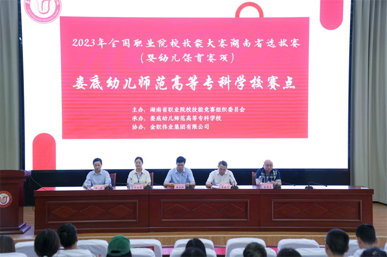 5月20日,由湖南省職業院校技能競賽組織委員會主辦、婁底幼兒師范高等專科學校承辦、金職偉業集團有限公司協辦的全國職業院校技能大賽中職組“嬰幼兒保育”賽項湖南省選拔賽在婁底幼兒師范高等專科學校圓滿落幕。此次賽事為期兩天,湖南十所中職院校組成的10支代表隊,共計20名選手同臺競技,各展風采。