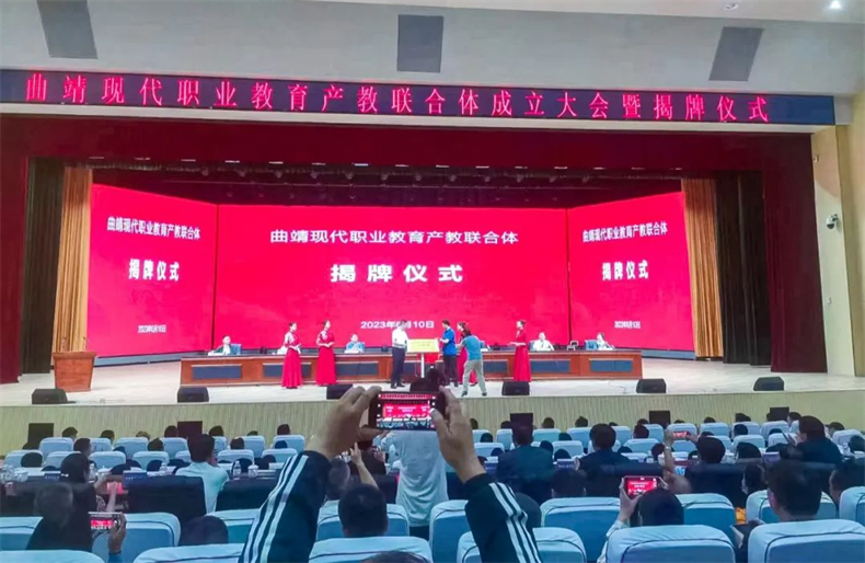 為推動產教融合、科教融匯,匯聚職業教育改革發展強大合力,6月10日,曲靖現代職業教育產教聯合體(以下簡稱聯合體)成立大會暨揭牌儀式在曲靖職業技術學院舉辦,省教育廳、市直有關部門、曲靖高新區管委會有關領導,有關院校、科研機構、市域龍頭企業負責人及曲靖職業技術學院部分師生代表參加大會。作為聯合體理事單位,金職偉業集團有限公司院校事業部副總監劉偉、云南區域負責人王德民等應邀出席。