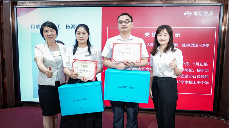 6月16日,金職偉業(yè)集團有限公司召開四月、五月員工大會,全體金職人齊聚一堂回顧工作歷程,總結經驗教訓,并展望未來,共商發(fā)展大計,做好下一階段工作部署。同時,會議還進行了先進表彰,共同見證了優(yōu)秀員工的榮耀時刻。