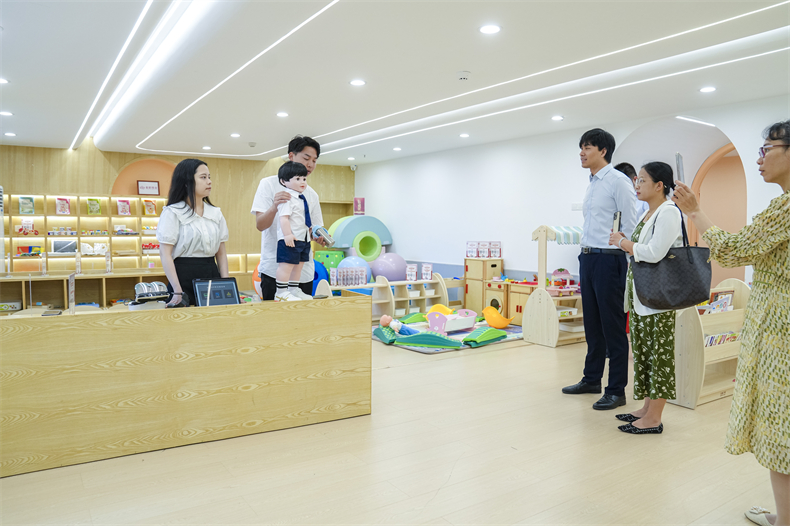 羅春霞副院長(zhǎng)一行參觀了金職偉業(yè)旗下的家庭服務(wù)產(chǎn)業(yè)學(xué)院、培訓(xùn)學(xué)校、產(chǎn)教融合型門店、托育綜合服務(wù)中心以及1+X幼兒照護(hù)、產(chǎn)后恢復(fù)實(shí)訓(xùn)基地,并現(xiàn)場(chǎng)體驗(yàn)了金職偉業(yè)發(fā)明專利智能仿真幼兒、嬰幼兒照護(hù)混合現(xiàn)實(shí)訓(xùn)練系統(tǒng)(MR)等智慧教育產(chǎn)品,實(shí)地了解金職偉業(yè)目前發(fā)展運(yùn)營(yíng)模式、人才培養(yǎng)、校企合作等相關(guān)情況。隨后,雙方舉行了深度交流的座談會(huì)。