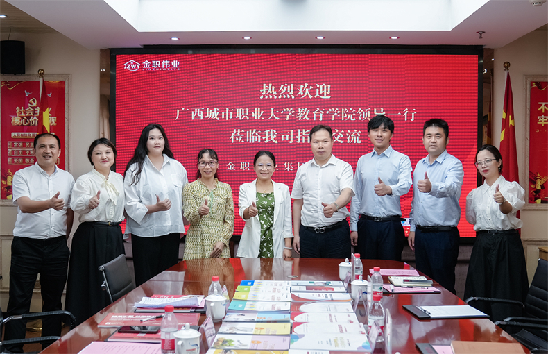 6月20日,廣西城市職業(yè)大學(xué)教育學(xué)院副院長(zhǎng)羅春霞、王永奎、教研室主任覃甲榮一行蒞臨我司考察交流,金職偉業(yè)總經(jīng)理潘建明、院校事業(yè)部副總監(jiān)劉偉等人熱情接待。