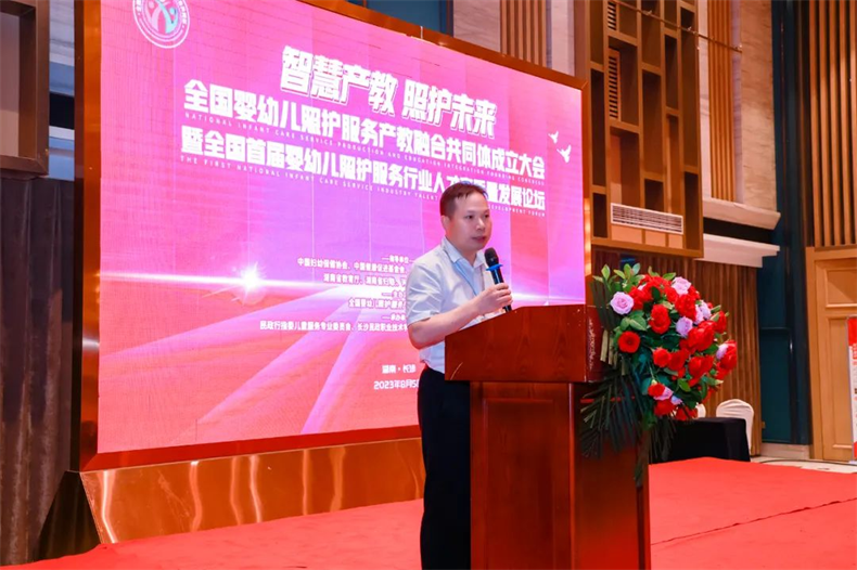 8月5日,“智慧產教 照護未來”全國嬰幼兒照護服務產教融合共同體成立大會暨全國首屆嬰幼兒照護服務行業人才高質量發展論壇在湖南長沙順利舉行,來自全國各行業協會、研究機構、醫院、婦幼保健院、本科院校、中高職院校、企業、托育機構的300余名代表共同參會。長沙民政職業技術學院校長陳靜彬、金職偉業總經理潘建明分別主持論壇。