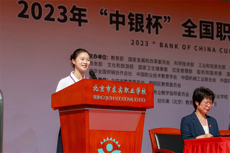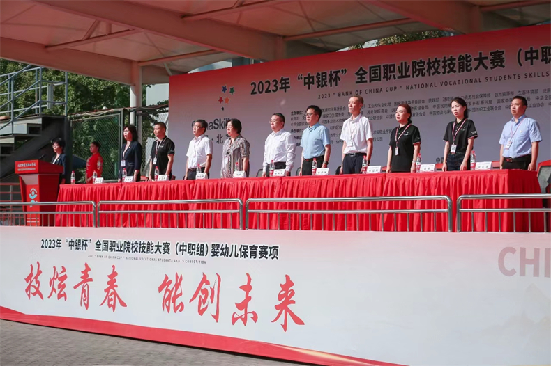 最后,開賽式迎來激動(dòng)人心的一刻。北京市朝陽區(qū)人民政府副區(qū)長楊蓓蓓宣布:2023年“中銀杯”全國職業(yè)院校技能大賽(中職組)嬰幼兒保育賽項(xiàng)正式開賽!