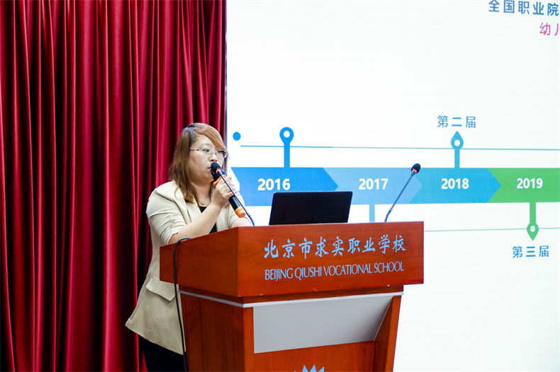 北京市求實職業學校教學主任李楊從院校視角,分享了《崗課賽證融合背景下的幼兒保育專業課程建設》的新思路、新方法,并與各參賽院校共同交流探討,以進一步理清思路,明晰路徑,明確幼兒保育專業發展方向。