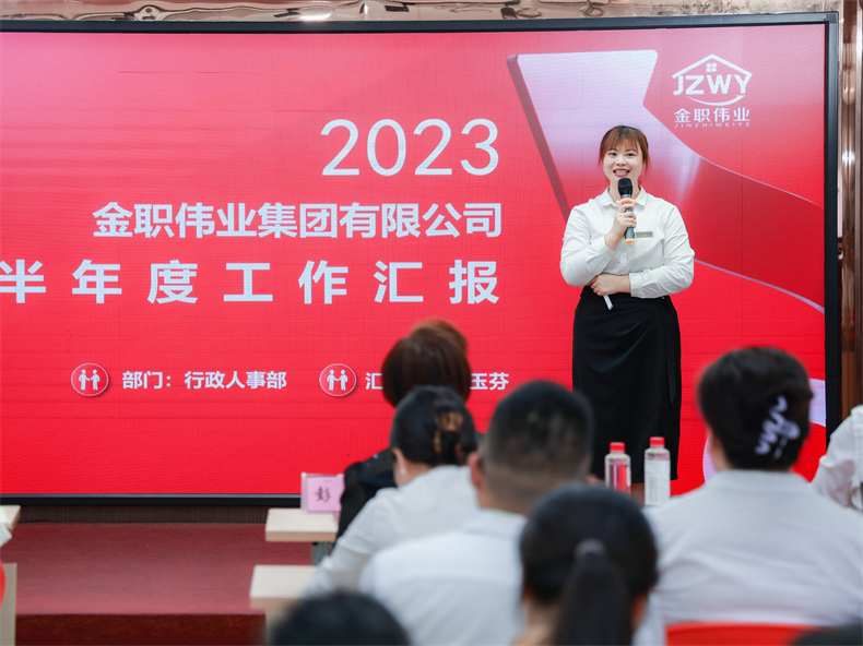 為檢閱上半年發展成果,總結經驗,分析不足,同時為下半年發展作規劃,9月27日,金職偉業集團有限公司舉行2023年半年度工作會議。全體金職人齊聚一堂,共同分享上半年的發展成果,繪就下半年的發展藍圖。