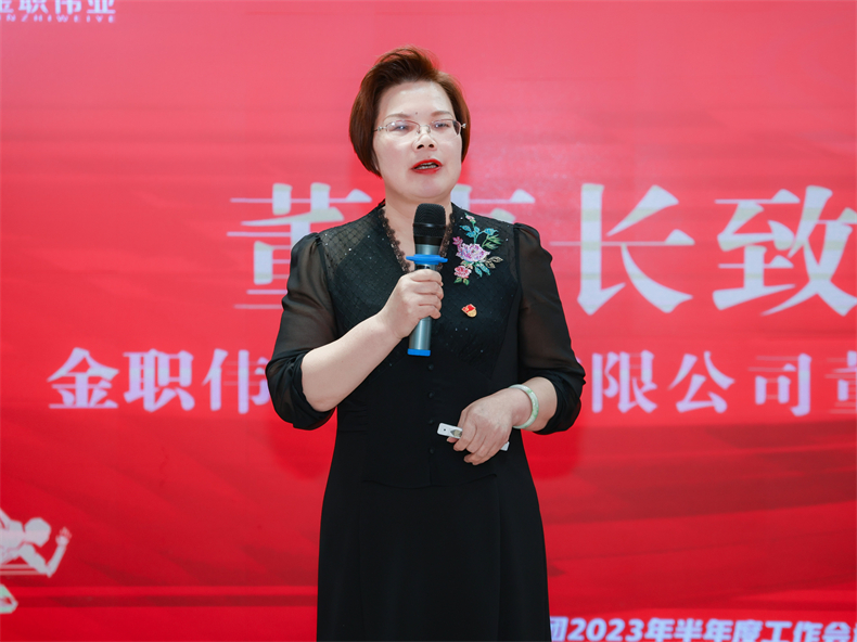 會議伊始,金職偉業董事長彭英發表致辭,她對2023年上半年各部門的辛苦付出做了充分肯定,在大事件回顧中深入總結了上半年公司的發展成果,對下半年工作作了具體部署。她明確指出,金職偉業的發展離不開國家政策的支持,下半年,金職偉業將緊跟政策步伐,在教育部的加快推進現代職業教育體系建設改革的11項重點任務的指導下,堅持金職偉業一體兩翼五重點的發展戰略,全力推進金職偉業下半年工作,實現年度目標達成!