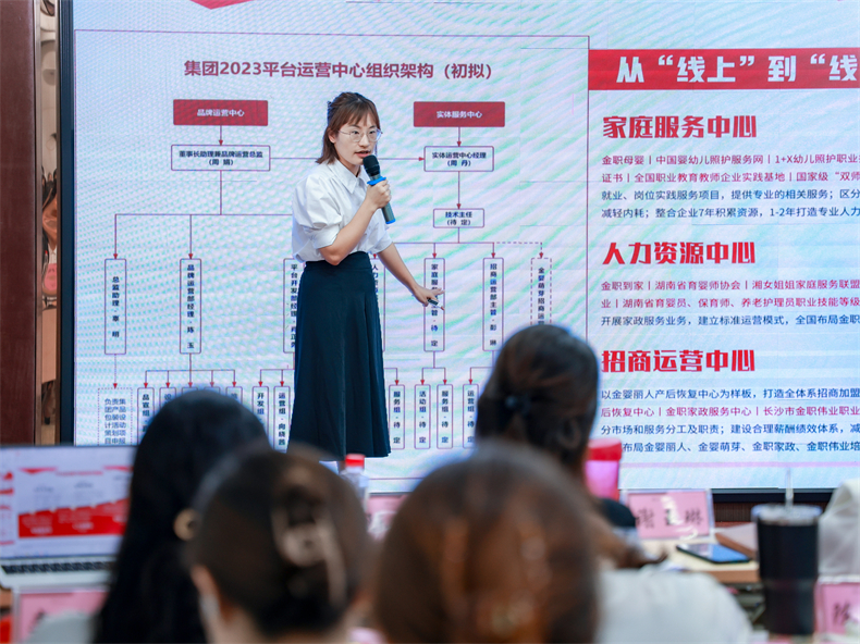 金職偉業總經理助理兼實體服務中心經理湯曌宇提到,下半年,金職偉業將推進開展產業學院的建設,爭取打造長沙最具標準的綜合托育中心,促進經濟發展的同時便利金職人安心工作。他談到,將鼓勵帶動團隊成員發展,攜手公司其他兄弟部門,共同為公司創下更多佳績。