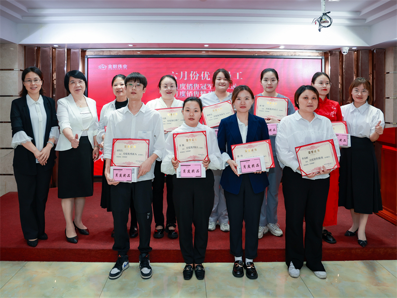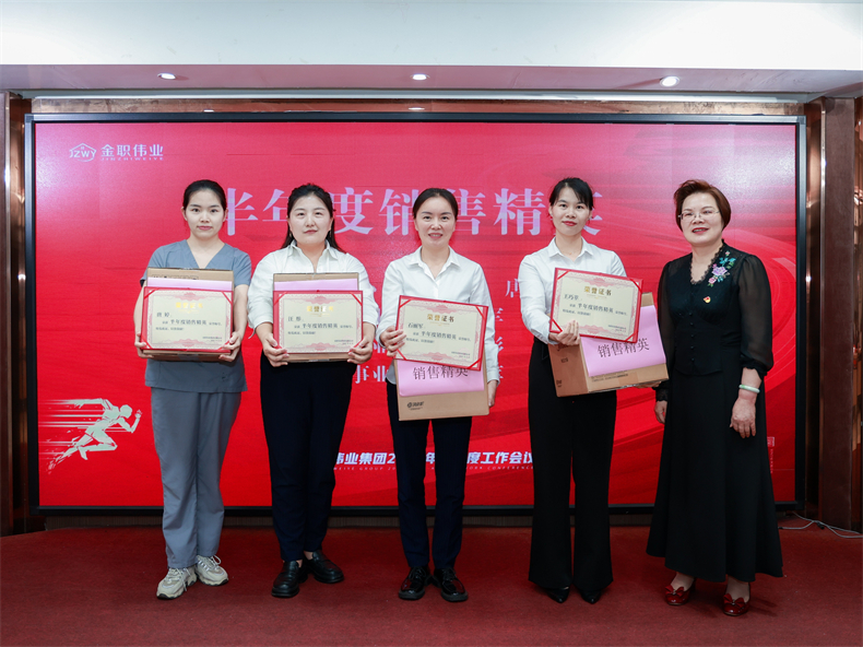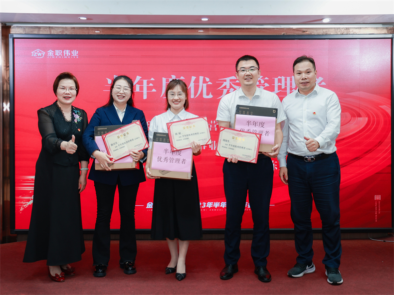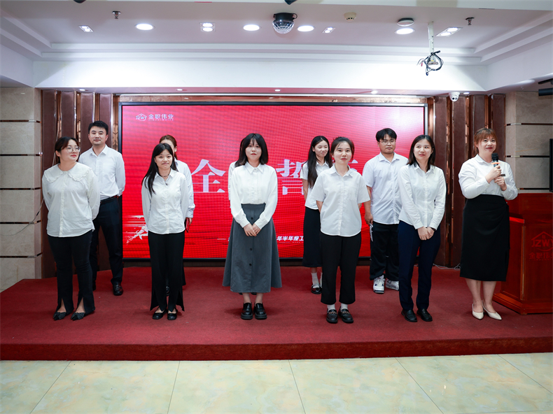 上半年,金職偉業發展再創新高,這離不開所有金職人的共同努力,離不開他們的不懈奮斗。懷著對金職的熱愛,他們克服種種困難,與金職同奮斗、共成長,他們的努力值得所有人贊揚。會上,金職偉業對六、七月及上半年度成績優異的員工現場進行了表彰。