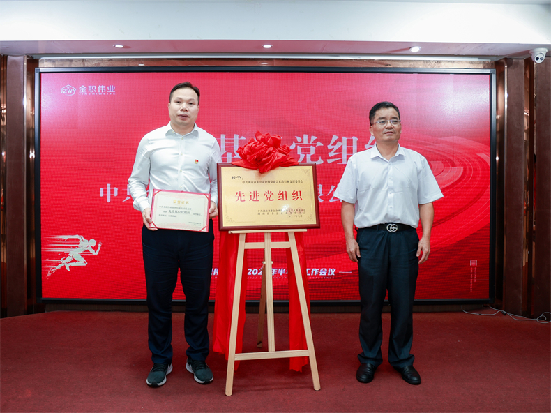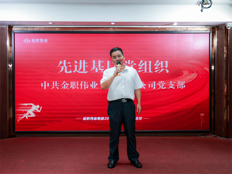 值得一提的是,此次大會,熊麗萍獲評“優秀黨務工作者”,周該生獲評“優秀黨員”,中共金職偉業集團有限公司黨支部榮獲“先進基層黨組織”稱號,現場,湖南省工商聯商會協會黨委委員、中共湖南省非公企業投資商會總支部委員會書記李國輝為他們頒獎。李書記表示,金職偉業取得的成績值得肯定。他代表上級黨委對金職偉業以黨建引領,促進發展,做出貢獻表示感謝。他談到,金職人充滿生機、積極向上、有文化、有追求;金職偉業文化豐富、底蘊深厚。他期待金職偉業愈加發展壯大,蒸蒸日上,達到發展新高度,踏上發展新臺階。