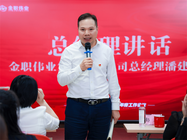 最后,金職偉業總經理潘建明作會議總結,就各部門工作作了具體指導,明確了方向。他從緣起、內涵、路徑、實踐幾個方面對行業產教融合共同體進行政策解讀,讓全體金職員工更加了解行業產教融合共同體。他期待,全體金職員工齊心協力,共同為公司下半年的發展努力奮斗。這是一次回顧往昔,展望未來的大會,金職偉業全體員工將以此次會議為契機,繼續以奮斗的姿態,迎接下半年的挑戰,以堅定的意志,完成每一項工作任務,以更昂揚的斗志,邁向美好未來!